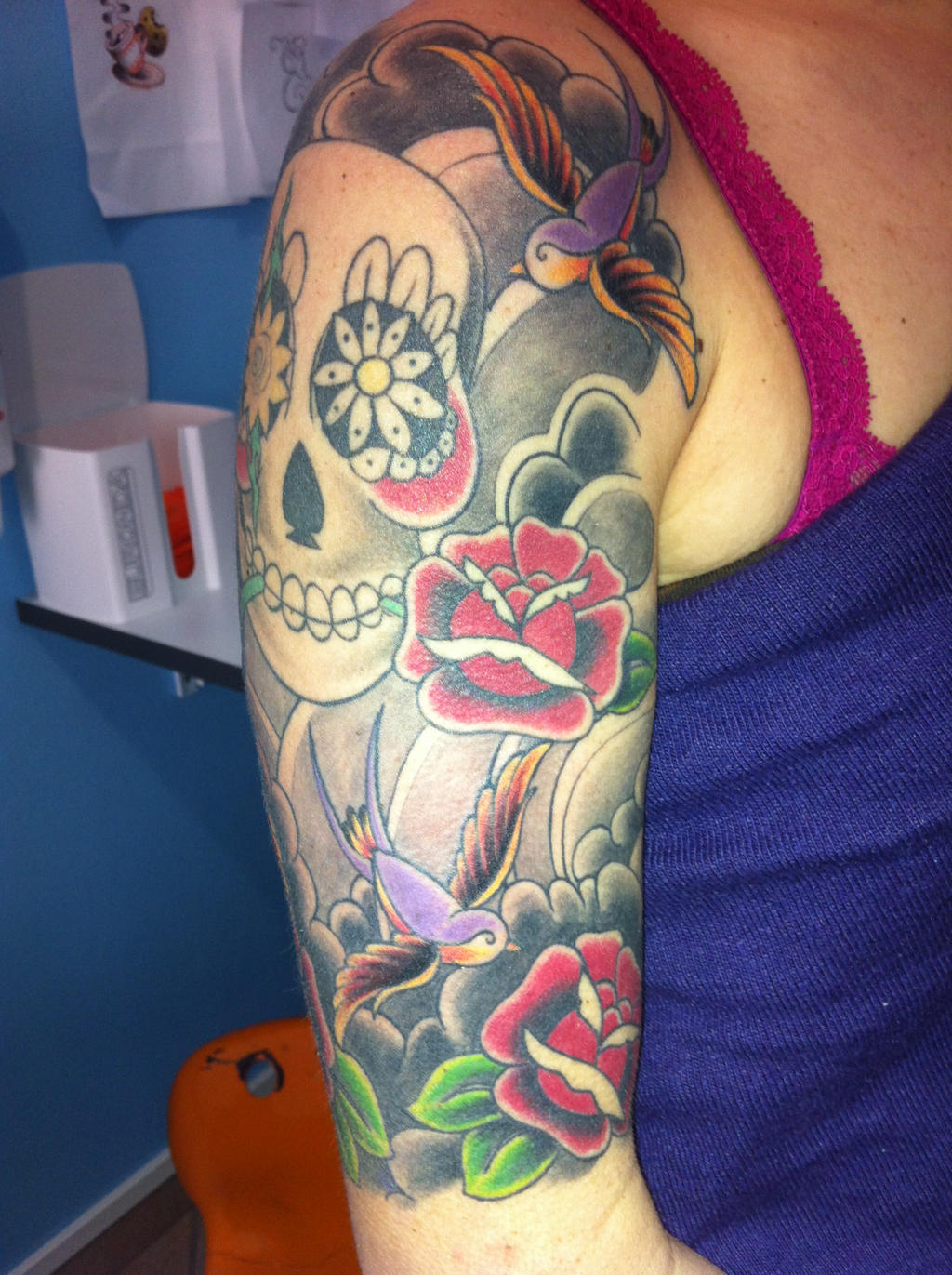 Half Sleeve Tattoo Skull Rose Swallow By Svitor On Deviantart - View Full Image